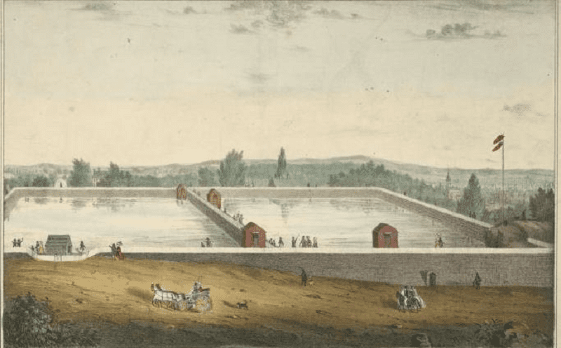 The Croton Aqueduct, completed in 1842, brought fresh water from the northern part of the state of New York to the city and the Old Croton reservoir was built to store it. Located at the site of the present-day Bryant Park, the reservoir was a massive open-air basin surrounded by a 50-foot granite wall. Read on to discover the role that Murray Hill specifically played in supplying water to Manhattan.