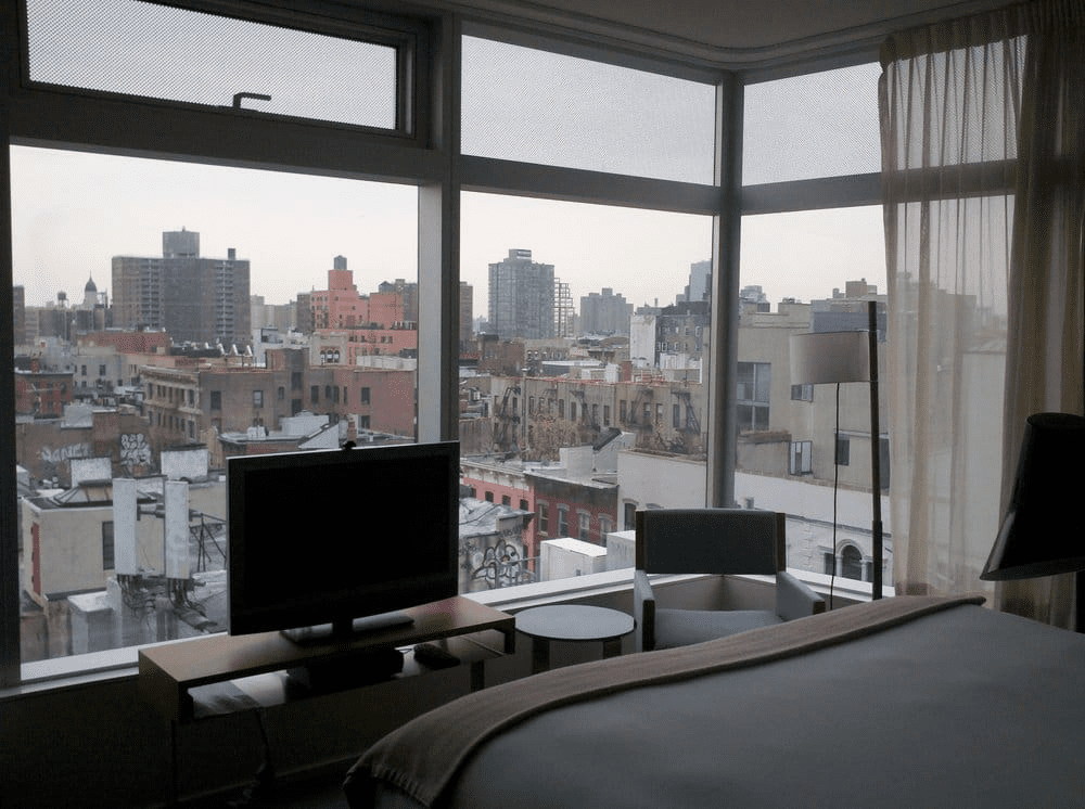 Rooms at The Standard Hotel offer unique views of the East Village rooftops, as well as the city’s famous bridges and skyscrapers. The floor-to-ceiling windows, huge HD screens, and Bluetooth-enabled audio systems enhance the experience. Bathrooms are adorned with mosaic tiles. Some rooms feature retro furniture and exquisite beds with plush down pillows.