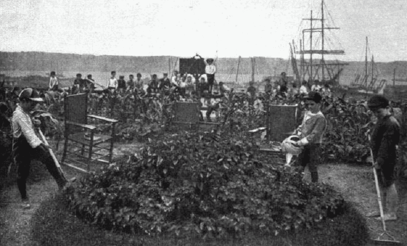 Изогнутые дорожки грациозно извивались по всему парку, украшенные смотровыми площадками, с которых открывались захватывающие панорамы на величественную реку Гудзон. Одним из невероятных украшений парка был детский фермерский сад — это был новаторский проект, ставший первым среди других в Манхэттене и Нью-Йорке. С 1902-го по 1932-й годы этот сельскохозяйственный приют служил плодородной почвой для цветущих растений: на этом участке находились впечатляющие 356 грядок, каждая размером 4’х8′, за которыми с любовью ухаживали «маленькие фермеры».