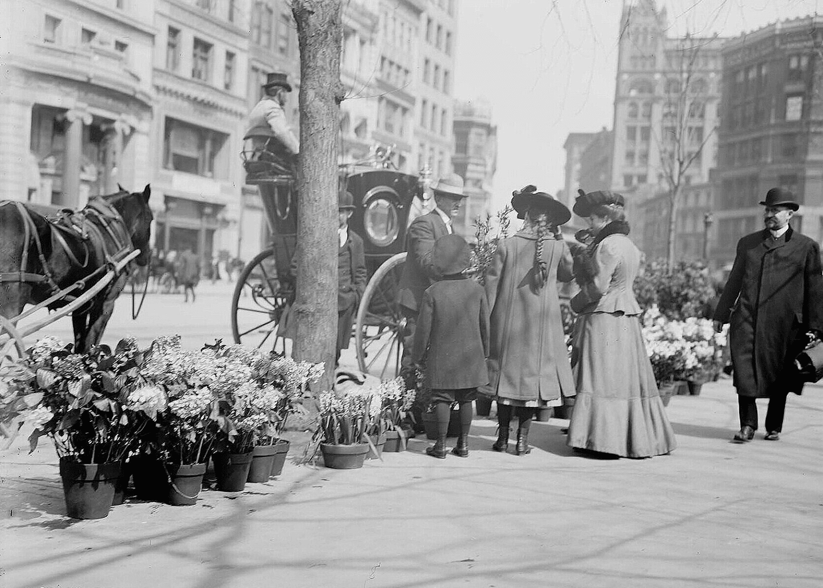 Історія квіткового мангеттенського ринку розпочалася у далекому 1850 році. Саме тоді почали зароджуватися активно квіткові ринки. Спочатку продавці розташовувалися на Канал-стріт, що на 34-й вулиці. Це було неформальне місце. Вже після Громадянської війни, було дещо складніше знайти місце для реалізації, тому приблизно у 1891 році ринок переїхав у іншу локацію – на Юніон-сквер. Важливо зазначити, що у цей період з’явився гуртовий ринок, власники ж закуповували велику кількість квітів у самих виробників: фермерів, власників теплиць, здебільшого у Нью-Джерсі та Нью-Йорку. З часом також з’явилися різноманітні асоціації, які об’єднувалися та розвивали флористичний бізнес. Мангеттен, та загалом, квіткова індустрія почала дуже розширюватися. До 1900 року в штаті Нью-Йорк було 237 теплиць, де вирощували квіти, відповідно, неабияк зростала конкуренція. Через це стало проблемним навіть знайти локацію для торгу, власники неодноразово судилися за місце, також значно знижувалися ціни. Троянди продавали по 1 долару за дюжину, ціни на азалії починалися від 3,50 доларів за штуку, а бостонська папороть у горщиках коштувала 1 долар. Більшість квітів походила з місцевих ферм на Лонг-Айленді, сільських округів штату Нью-Йорк та Нью-Джерсі. Завдяки появі асоціаціям та клубам флористів, з’явилася можливість замовляти більші партії квітів у таких віддалених штатах, як Массачусетс, Іллінойс, Флорида, Кентуккі, Канзас. Квітковий бізнес невпинно продовжував процвітати. Зазначимо, що у 1800-1900-х роках організовувалися різноманітні шоу, які додатково популяризували індустрію.