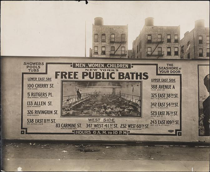 Варто зазначити, що благодійні організації Нью-Йорка побудували не менше 12 купалень в Мангеттені й в Брукліні у відповідь на кризу громадського здоров’я серед людей, що жили в багатоквартирних будинках. Будівельні норми та правила для багатоквартирних будинків вимагали наявності ванних кімнат, але не душу або ванни. Без дотримання гігієни мешканці були вразливі до різних інфекцій і хвороб. Міська влада намагалася знайти методи стримати поширення хвороб, викликаних антисанітарними умовами, і одним зі способів досягнення цієї мети стало будівництво загальнодоступних купалень. Спочатку тимчасові плавучі купальні з’явилися вздовж річок Гудзон і Іст-Ривер у кінці XIX століття, але вони були сезонними й, хоча і забезпечували необхідну прохолоду та очищення в літні місяці, багатьом жителям Нью-Йорка все ще не вистачало лазень осінню та взимку.